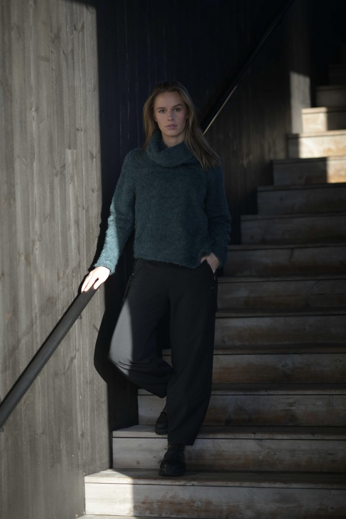En fantastiskt snygg och skön byxa från E Avantgarde. Svart byxa med fina detaljer, fickor med dragkedja och band för en sportig look. Behaglig resår baktill i midjan. Byxan har en sydd sömm nedtill på benet och härefter smalnar den av ned mot foten.