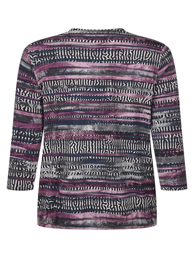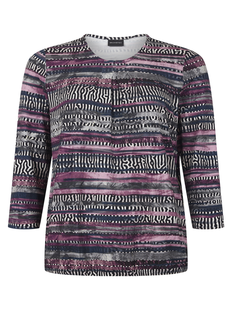 En mönstrad topp i fina färger från Brandtex. Rund hals, 3/4-dels ärm samt resår nedtill. Passar utmärkt till kjol eller byxa.