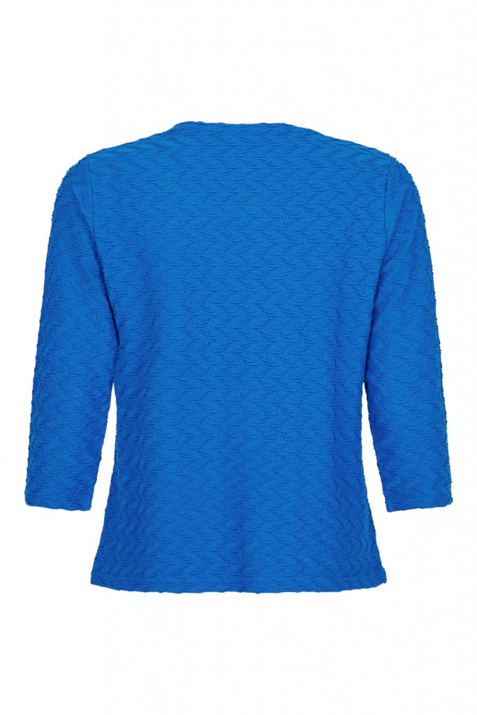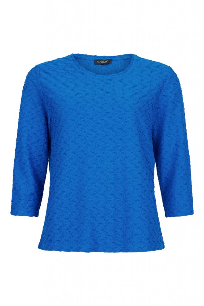 En snygg Jacquardmönstrad topp från Sunday. Rund hals och 3/4-dels ärm. Vi har tagit hem toppen i korallblå och marinblå.