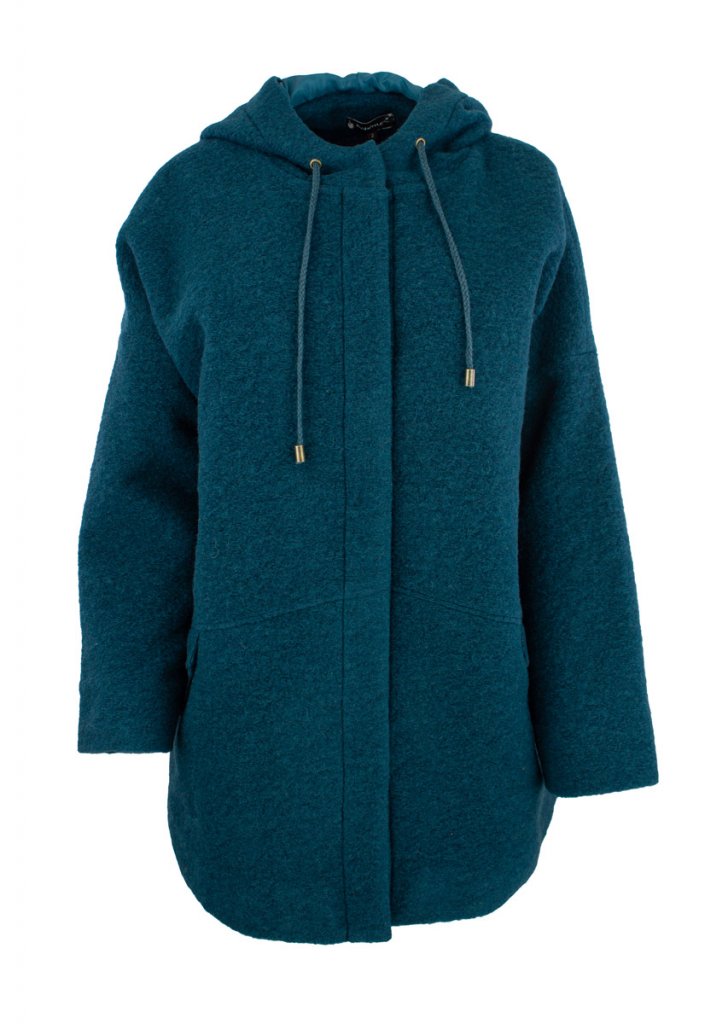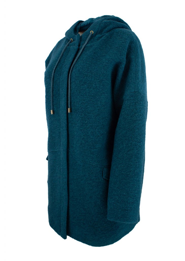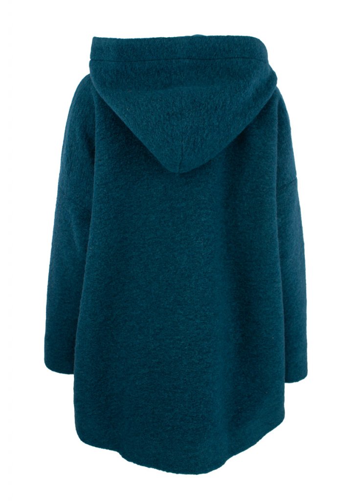 En ulljacka från Bohéme i den härliga färgen Petrol. Jackan är fodrad och har en bra vidd, hätta med snöre samt fickor fram. Jackan har vattenavvisande egenskaper.